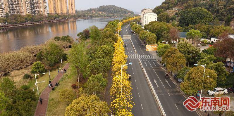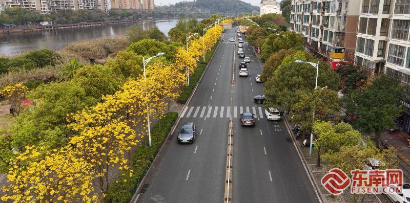 东南网3月23日讯(本网记者 潘月容)春日融融,宁德中心城区塔山路、光华路沿线的黄花风铃木迎来盛花期。满树金黄的花朵宛若风铃缀枝,与蓝天、街谈兴味无限,勾画出放荡醉东谈主的城市春景。