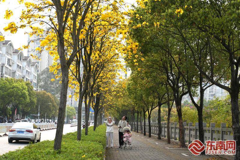 绽开德黄花风铃木。东南网记者 潘月容 摄