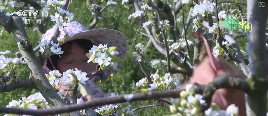 r每年清朗节前后,四川梓潼县1万多亩梨花竞相通达。当地抢合手晴天气,采用东谈主工授粉的样式助长新但愿。