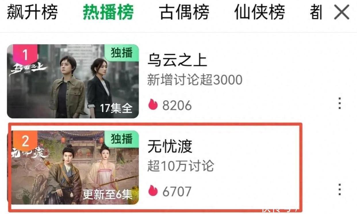 《无忧渡》开播即炸场,径直把同时剧甩成布景板。爱奇艺站内热度破9500,播放量2.3亿,微博热搜28个,连《乌云之上》齐被抢了风头。这剧几乎杀疯了!要知谈它压了三年,本觉得是清仓处分,恶果成了王炸。
