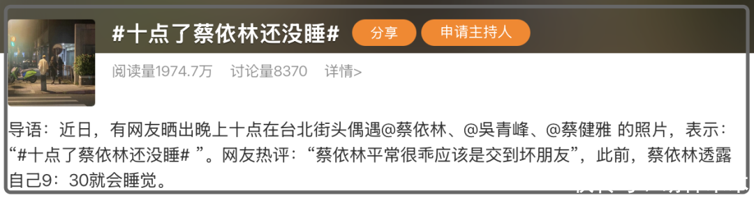 而在为止的第二天一大早,蔡依林又火速凭借“十点了还没睡”一举登上热搜。前段工夫蔡依林在与吴青峰蔡健雅录播客的时候理解,本年从好意思国献技总结后因为倒时差,晚上九点半就睡,连络两三天,蔡依林起来发现我方超漂亮。因此决定尽量保管这个早睡的风气。