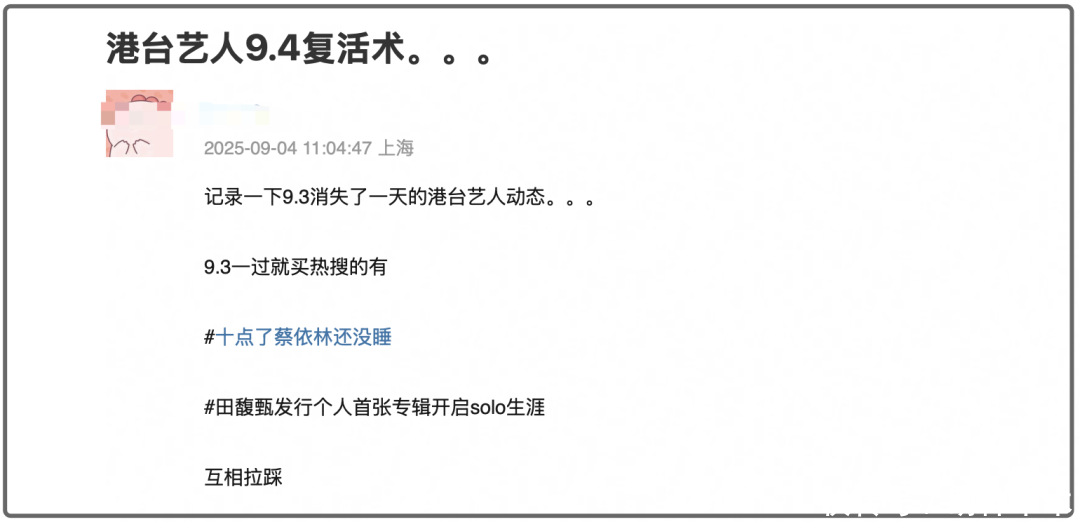 十点不睡觉一个热搜,复兴十点不睡觉又一个热搜,夙夜各一个热搜,这频率如实有点高了,咱即是说为啥九三考订本日,蔡依林莫得上热搜呢?有工夫复兴睡不睡觉这种小事,却莫得工夫转发抗战告捷,这番操作当然亦然透顶惹怒网友,引来了多量网友的袭击。