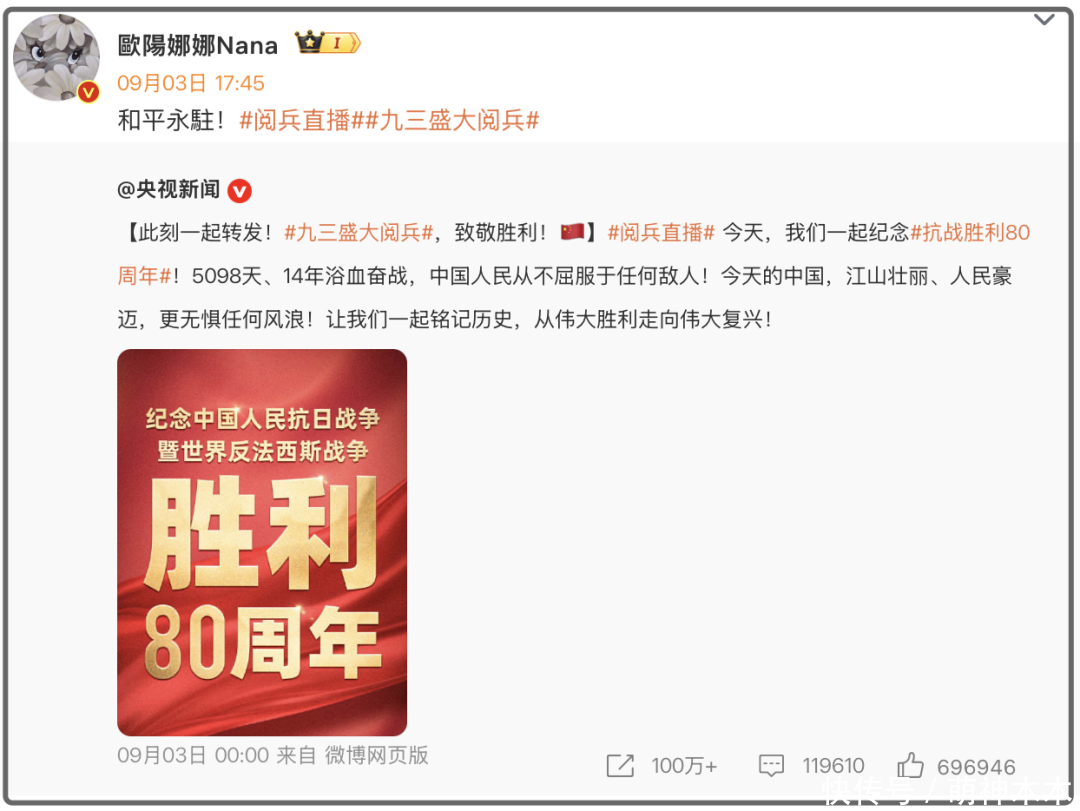 九三大考订本日,不少两岸明星艺东说念主纷纷转发抗战告捷,尤其是对港台艺东说念主来说,这波操作再次解释了他们强项的态度开云体育,但也有个别明星九三本日千里默,九三一过就跋扈上热搜,蔡依林即是其中之一。