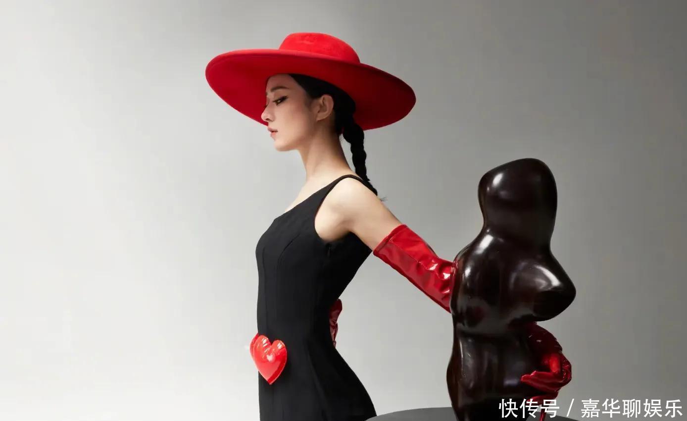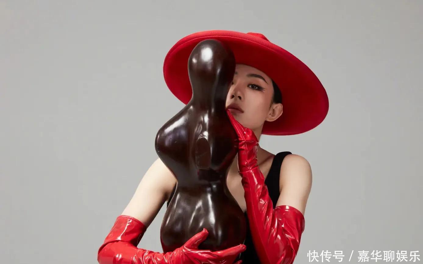 还有红色长裙造型,明艳又大气,抱着白色艺术摆件,有种特有的艺术氛围感,好意思得好有故事感。戴红色宽檐帽、红色长手套的造型也很绝,和深色艺术雕刻互动,守旧又摩登,这组的确很有视觉冲击力,前锋暴露力拉满。