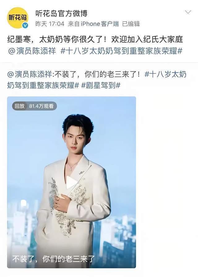 由此可见《18岁太奶奶驾到,重整眷属荣耀》的短剧受众之广。说明陈添祥清楚的议论信息可知,《18岁太奶奶驾到,重整眷属荣耀3》的脚骨子量很高,变装复杂且具有迷惑力。他饰演的老三仅凭借着第二部竣事时的冰山一角就让不雅众们期待已久。如今听到他的饰演者如斯刻画变装,不雅众们想看这部剧的守望瞬息被拔高到一定进度。