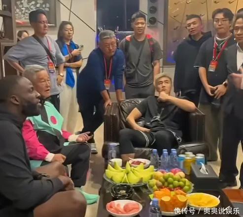 比赛收尾后,本山大叔在家里切身管待了郭艾伦等篮球明星,只见他和几位来宾在沙发上坐着聊。