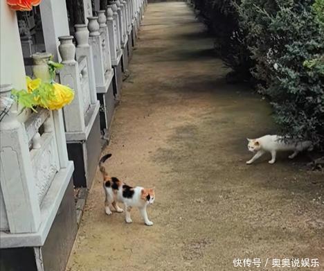 有次她去墓园的技能,看到两只流浪猫正依偎在她的墓碑傍边,就把这一幕拍了下来上传到网罗。