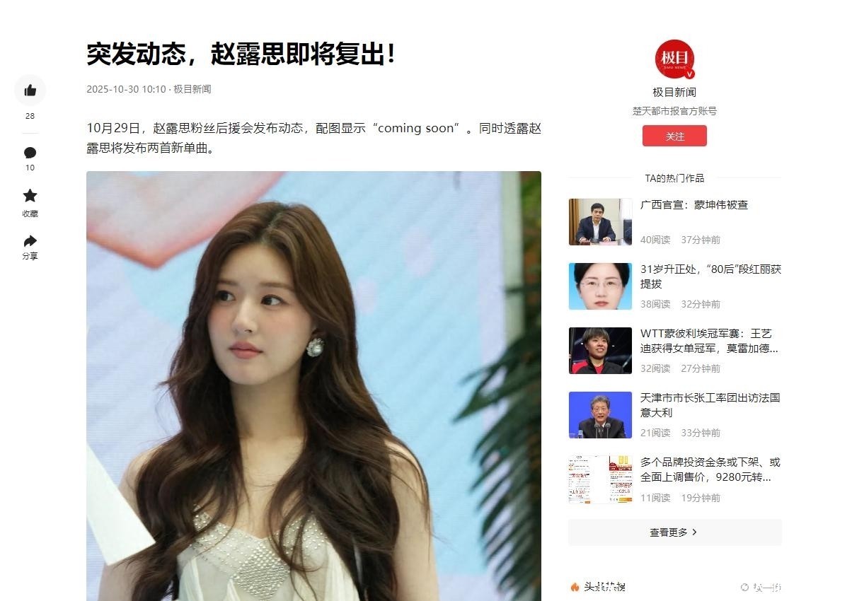 随后主流媒体报说念进一步助推“赵露念念行将复出”的话题冲上热搜。