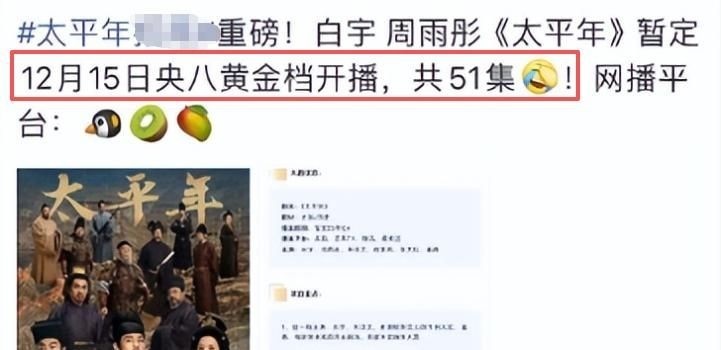 12月15日,央视八套强势出击——备受瞩指标51集大型历史正剧《太平年》细密登陆黄金档!