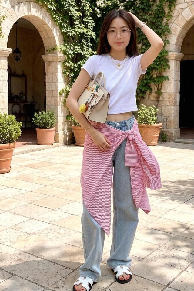 春天把衬衫当外衣穿外出时,还需要细巧一下穿衣措施,内搭的单品不错像博主相似遴荐塞衣角穿法也不错遴荐惯例露脐面孔的内搭,遴荐只是遮住裤袢长度的内搭时,不错辩论不塞衣角,让衣摆当然下垂,恶果也不赖。