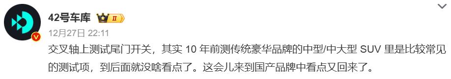 但如果你是从油车期间就启动关注汽车的老车迷,那你应该知说念,交叉轴测关门这玩意在宣传口径里,基本依然和汽车质地测验器划等号了。