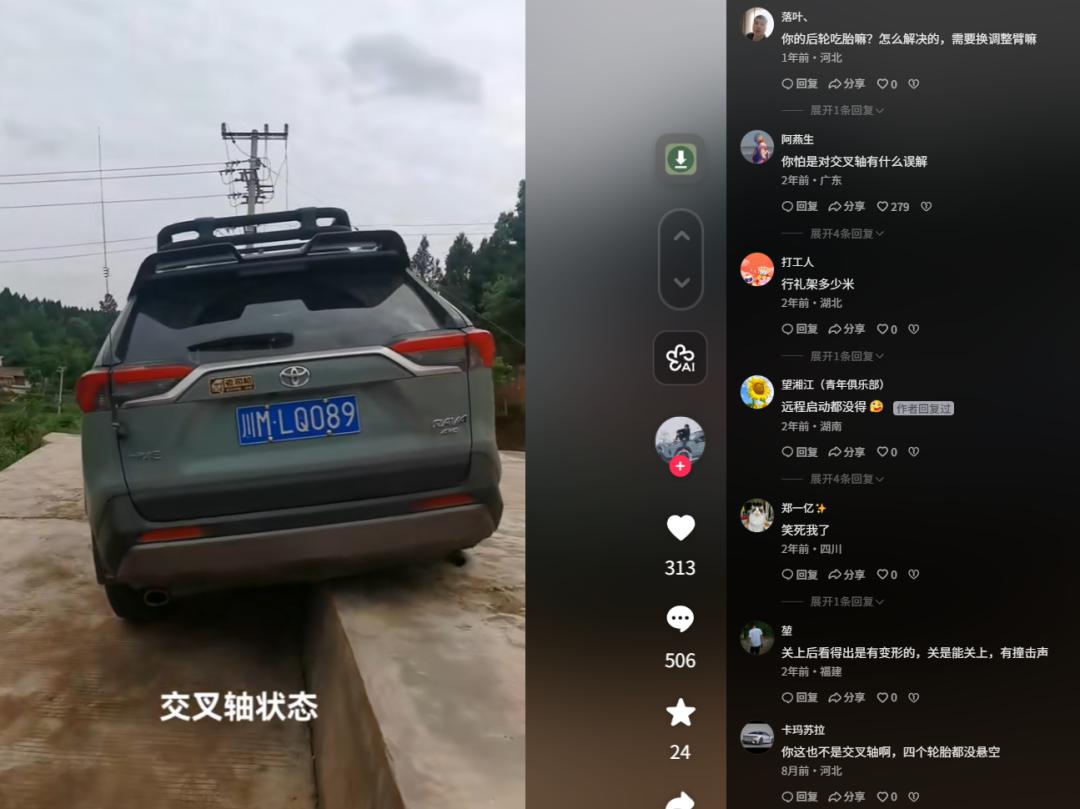 就比如当年许多东说念主都在说日系车的质地不行,用的都是丰田 RAV4 荣放、丰田汉兰达的交叉轴测试来当例子。